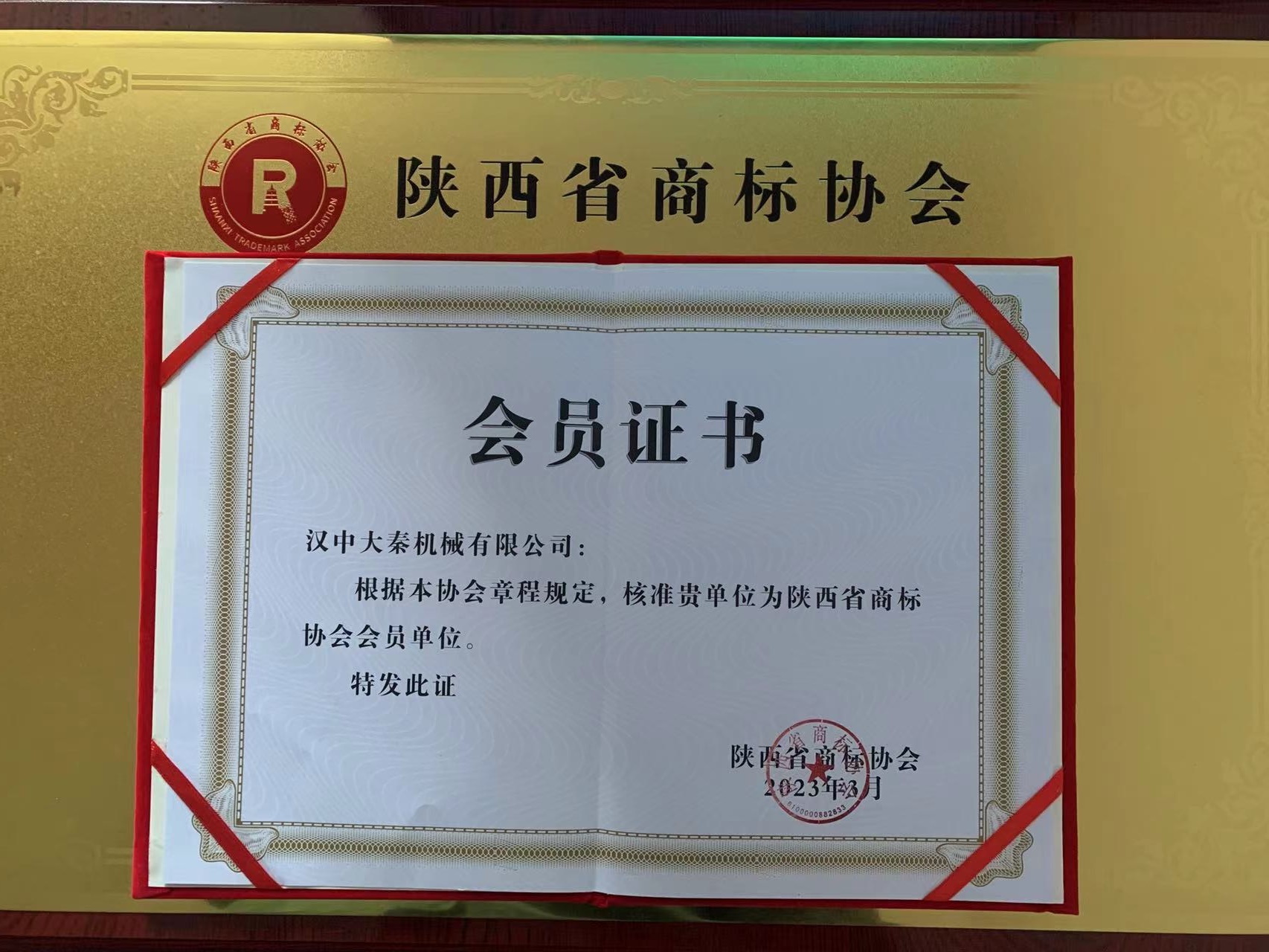 3月30日,陜西省商標協會成立大會暨會員大會在陜西大會堂舉行,漢中大秦機械有限公司應邀出席會議,并成為協會首批會員單位。